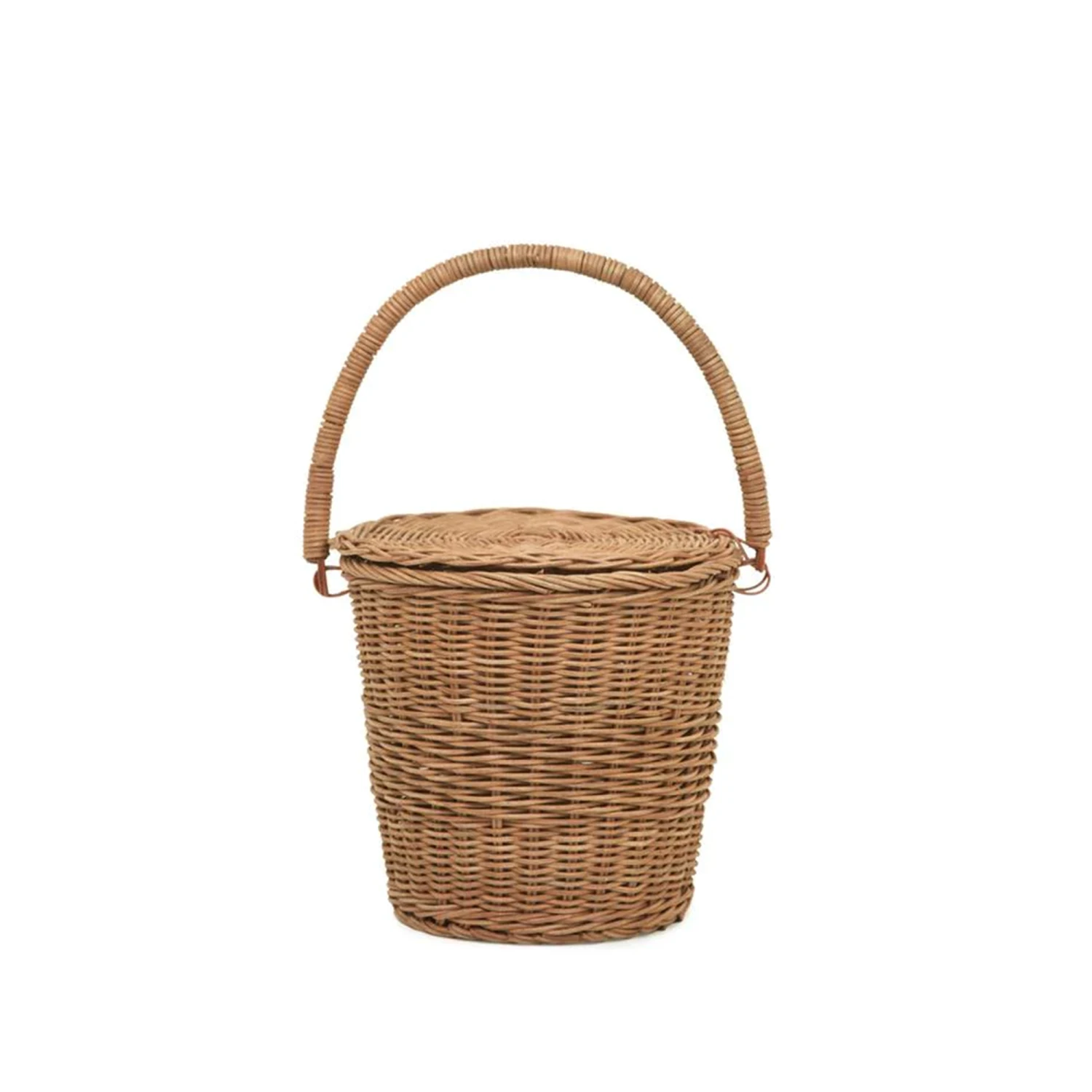 Like its name sake, the Big Apple Basket was designed with a wink to the classic woven baskets you might have found in the French country side, a staple for the apple and berry pickers. The Apple Basket is the sweetest tote for taking to the market, the beach or seasonally for fruit picking and Easter egg hunts! Handwoven from rattan and featuring a little lid that sweetly hangs to the side when not in use.