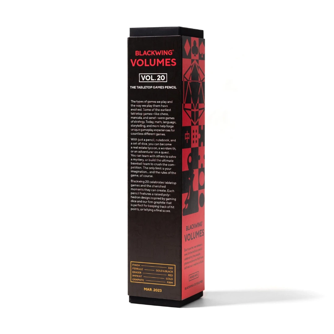 Blackwing 20 celebrates tabletop games and the cherished moments they can create. Features a raised polyhedron design inspired by gaming dice and our firm graphite.