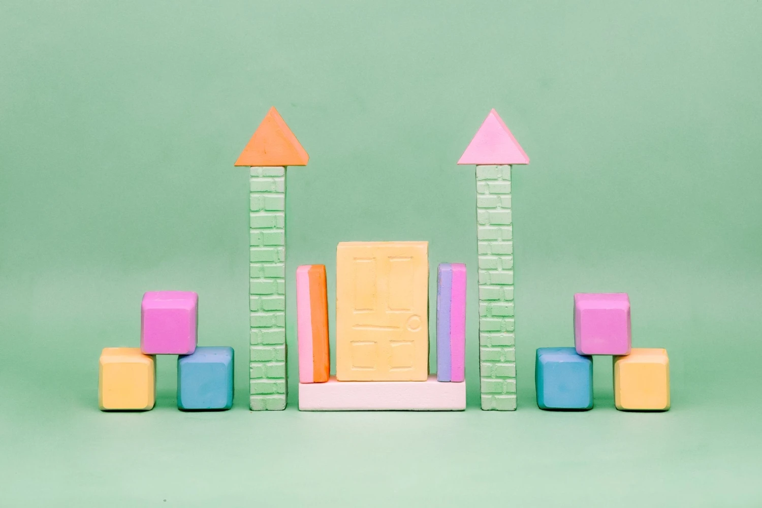 Each pack includes twenty colorful geometric building blocks made out of sidewalk chalk.