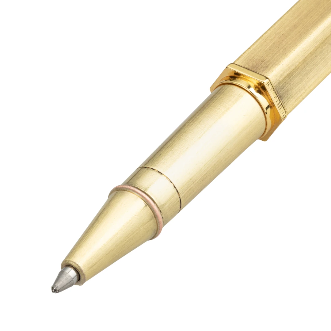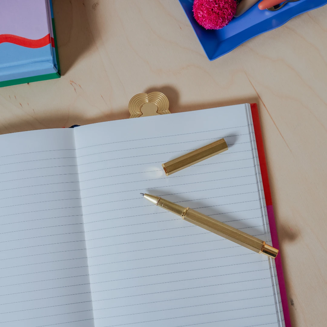 A trusty pen for a true paper person. Papier’s original pen has a smooth rollerball nib – ideal for jotting down quick notes or penning lengthy letters. From subtle blue to shimmering gold, the hexagonal metal pen feels wonderfully weighty in the hand (the mark of a good pen).