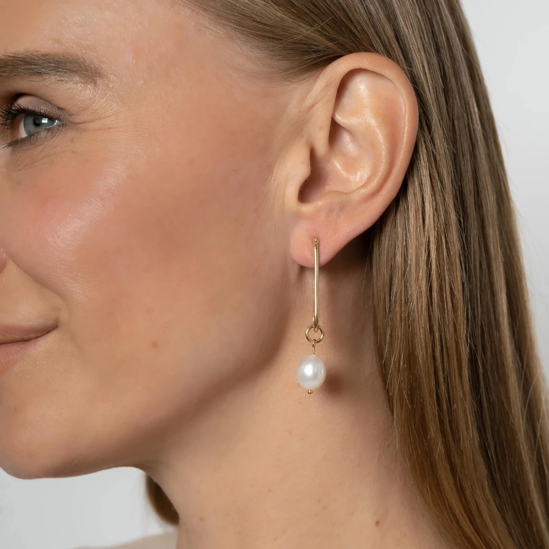 These new beauties are the top of our list this year – freshwater pearls dropping from a cool elongated 14k Vermeil hoop. Can be dressed up for any event, or the perfect addition to your seaside summer look. Pearl charms can be removed x hoops worn alone as a cool everyday look. Our favorite 2 in 1 style.
