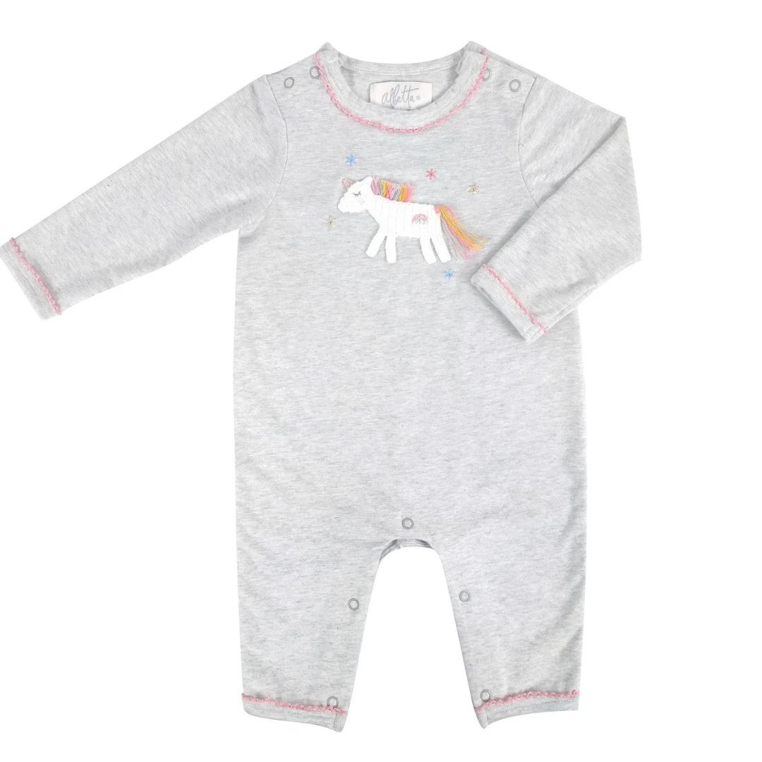 Crochet Unicorn Grey Marl Lurex Baby Romper