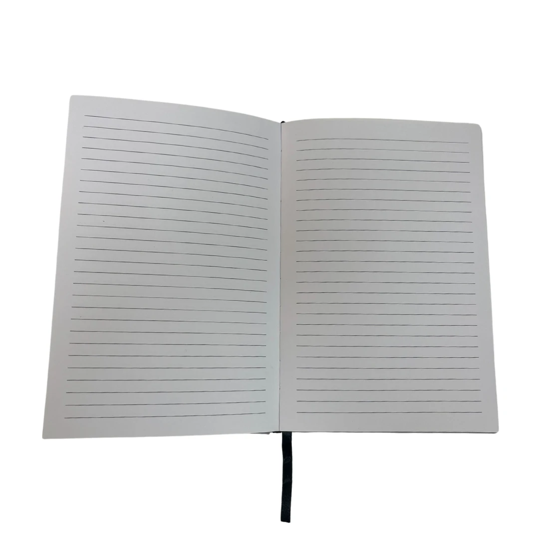 Each notebook has 160 lined pages and a black satin ribbon bookmark.