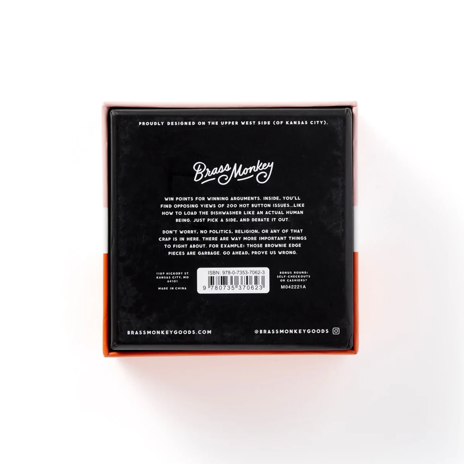 Win points for winning arguments. This social game by Brass Monkey includes 200 game cards, each featuring opposing views of hot button issues…like how to load the dishwasher like an actual human being. Just pick a side, and debate it out.Â
