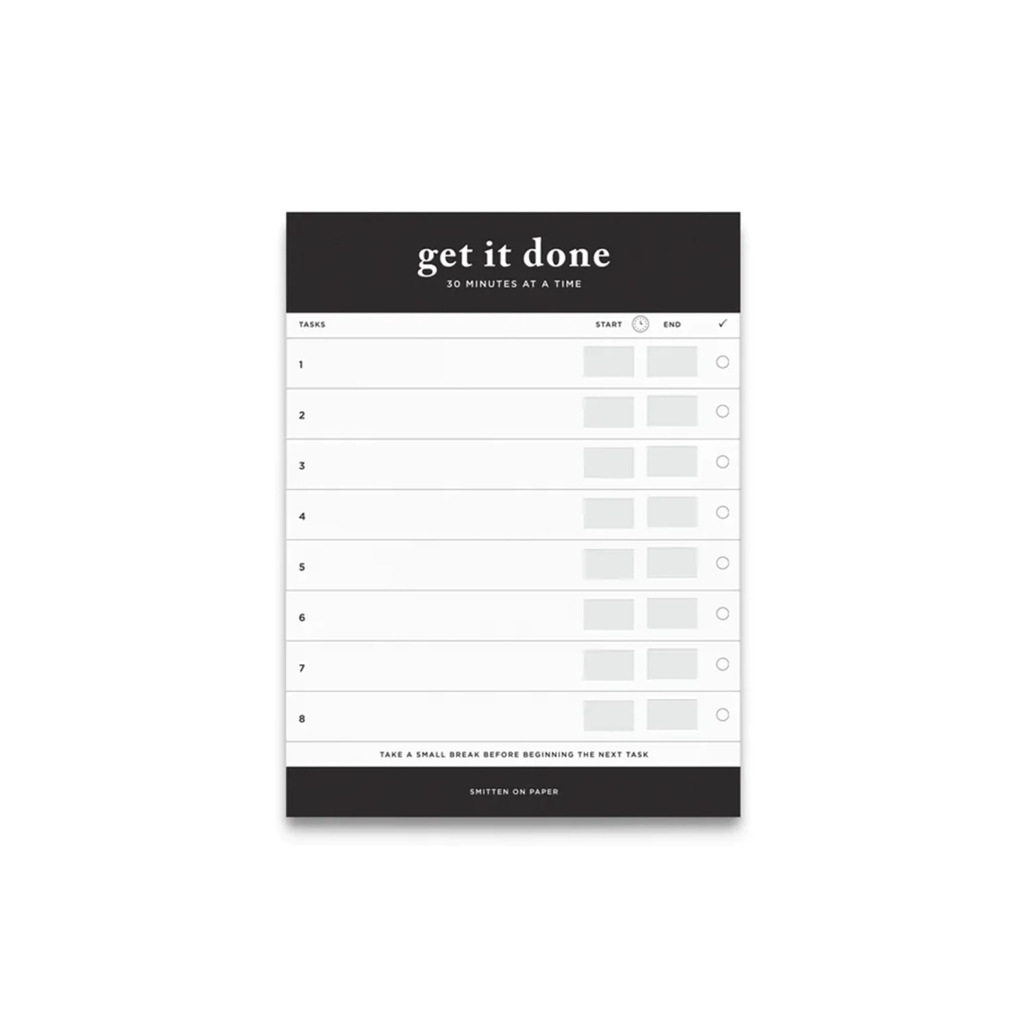 Smitten on Paper’s get it done chunky notepad is made to help organize your day. Breaking down tasks or projects into 30 minute chunks is the most effective way to get work accomplished.