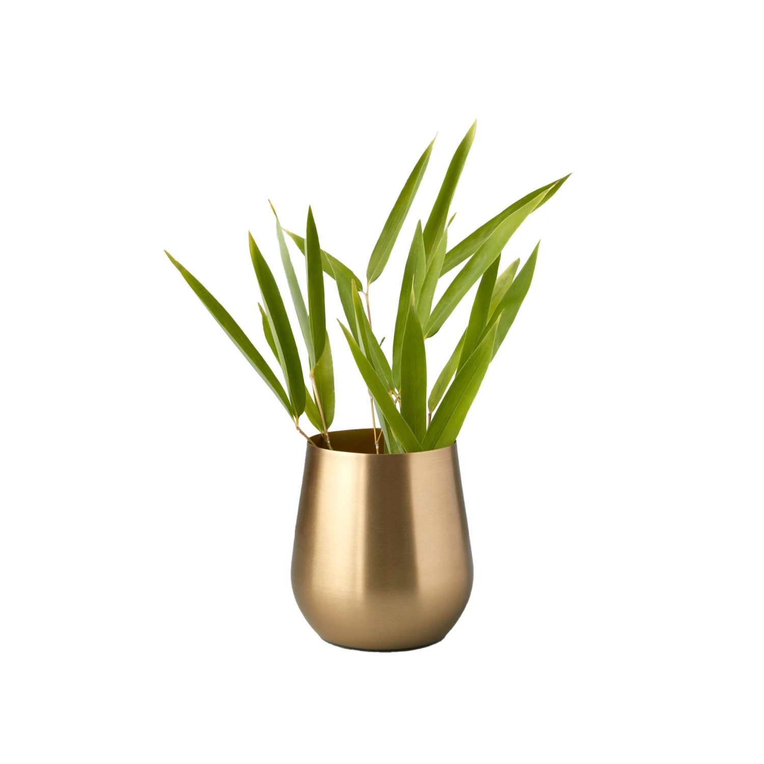 Add a golden sparkle to your home decor with this small Gold Sloped Vase by Be Home. This elegant piece will shine for you, even on the rainy days.