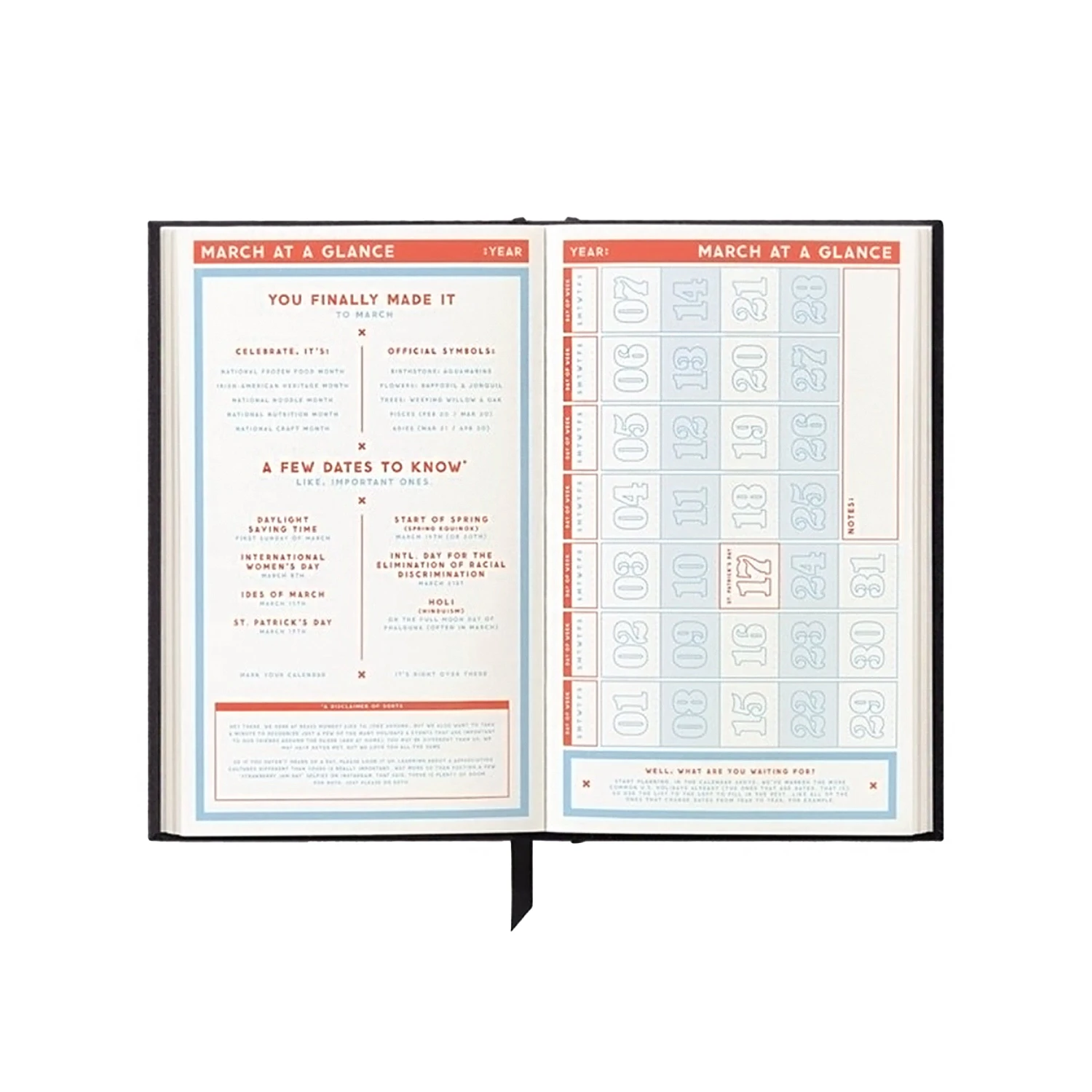 You could say that this cloth-bound mini daily planner by Brass Monkey is undated…but you’d really be selling it short. It’s more like…”un-yeared.” See, we did all of the hard work for you.
