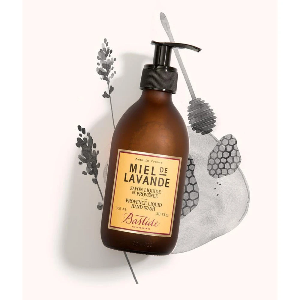 Made in the practice of traditional French saponification, Bastide’s liquid hand wash is gentle to your skin and kind to the environment. With a base of coco oil and Provence olive oil (and 0% SLS), this beautiful liquid soap glides on through your hands gently, rinses clean, and leaves behind no harm, only a gentle honey lavender fragrance. Delicately scented with our delicious Miel de Lavande fragrance, reminiscent of easy Sunday mornings, indulging in spoonfuls of Provence lavender honey.