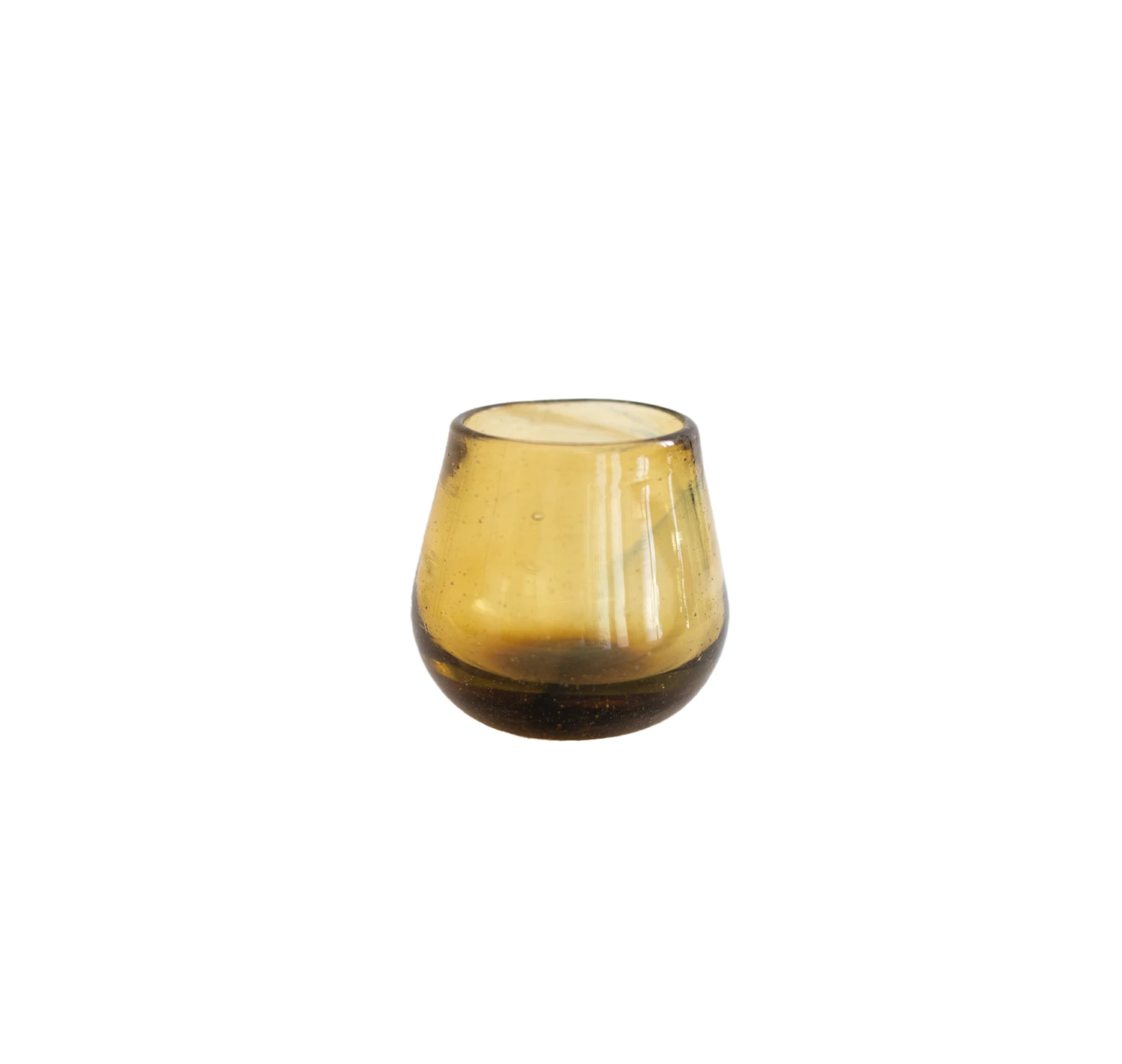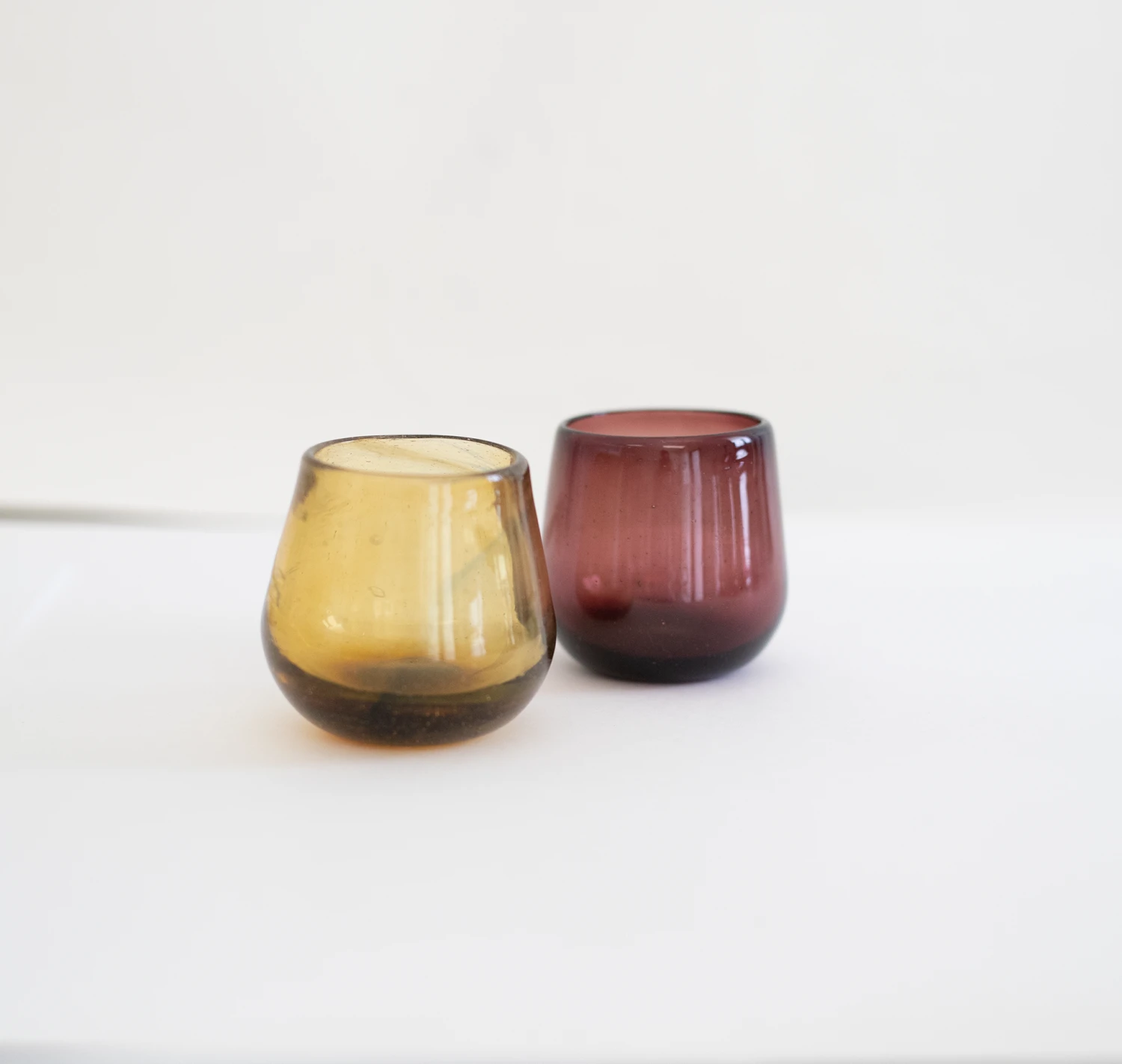 Stemless wine glass. Hand-blown, allowing for variations and personality in bubbles and hues.