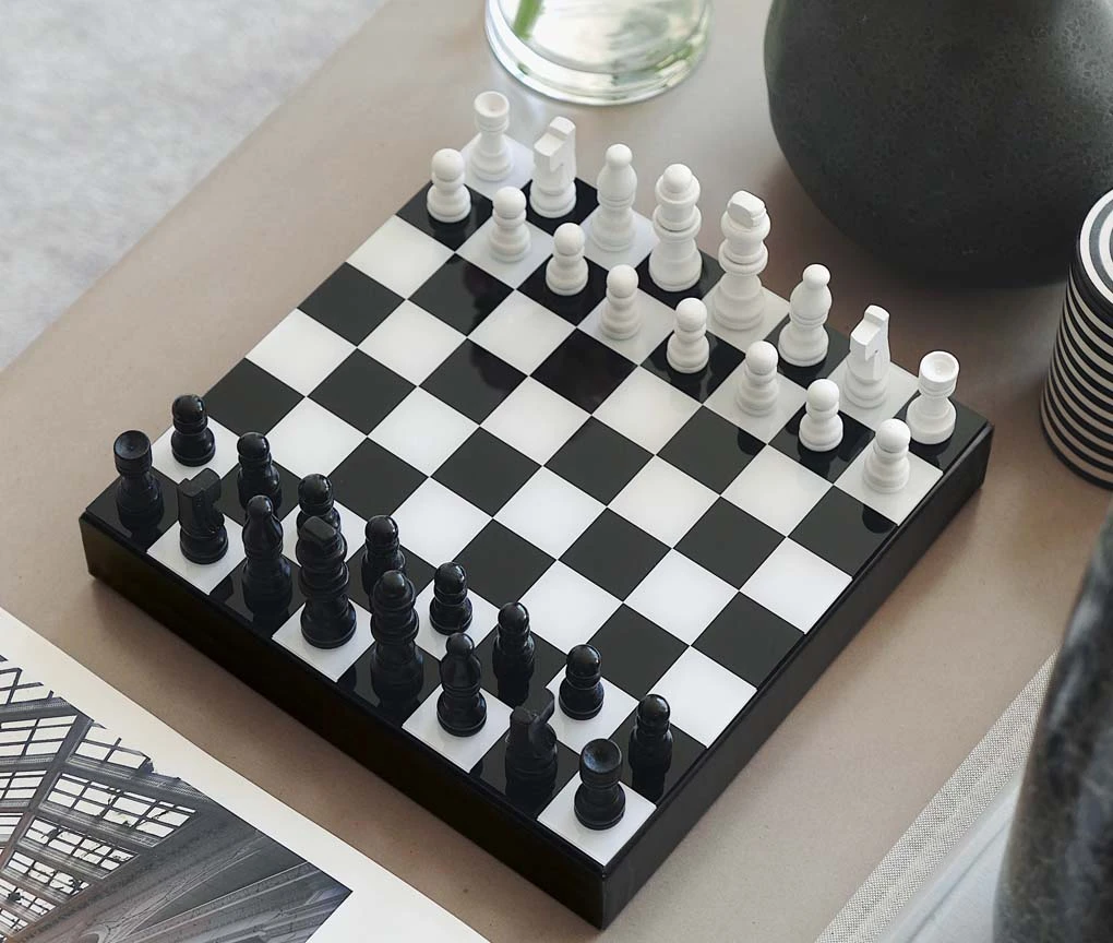 A beautiful special edition of our Classic Chess in a spectacular design. The pieces and board are made of wood and a thin layer of acrylic is mounted on the board’s surface giving the pieces an nice reflection. The box is made of high quality art paper with a printed cloud formation and a foil stamp in black. This game is part of our concept ”Coffee Table Games” and will be a decorative piece wherever you chose to place it.