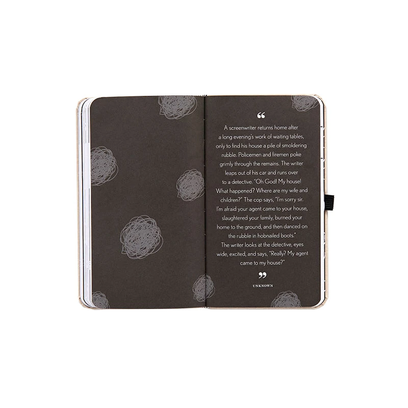 A notebook for writers, by writers. Jot down everything from plot points to title ideas to character quirks and snippets of dialogue in this compact, lay-flat, cloth-covered notebook. Interspersed among the blank, lined pages are quotes that touch on all aspects of writing and being a writer. Offering advice, witticisms, and quips on everything from the creative process to the agonies of editing to the dream of publishing, this notebook is the perfect gift for anyone brimming with stories that should one day be written.